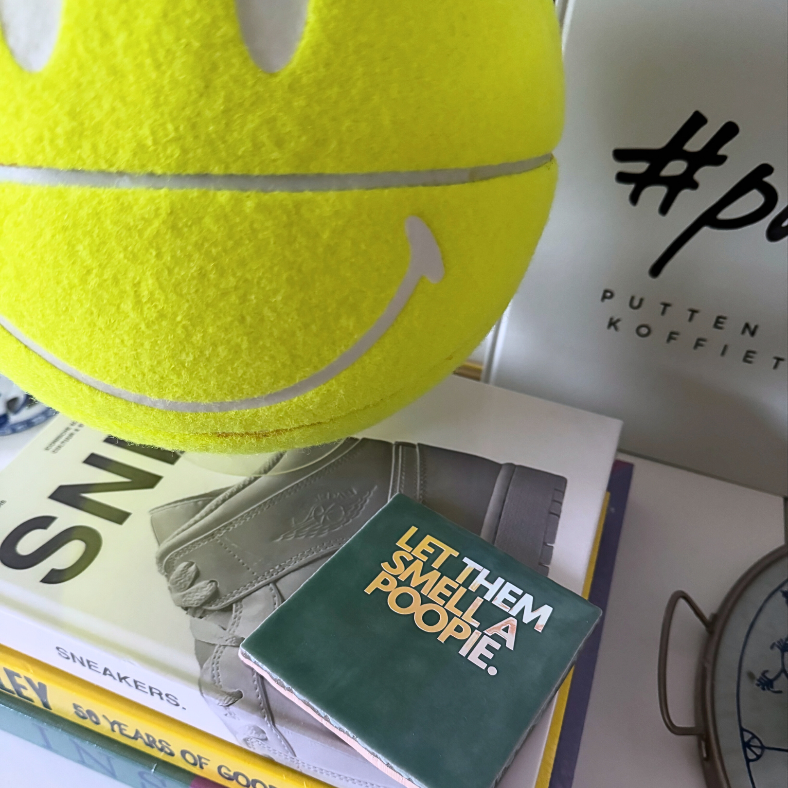 Gedurfd, eigenwijs en met een knipoog: dit BLUDD® handgevormde tegeltje is een kunstzinnige uiting van attitude. De quote “Let them smell a poopie” is ontstaan uit een co-creatie actie via Instagram en is nu vereeuwigd op een blue-ish keramieken tegel met lichtroze/geel holografische opdruk.
